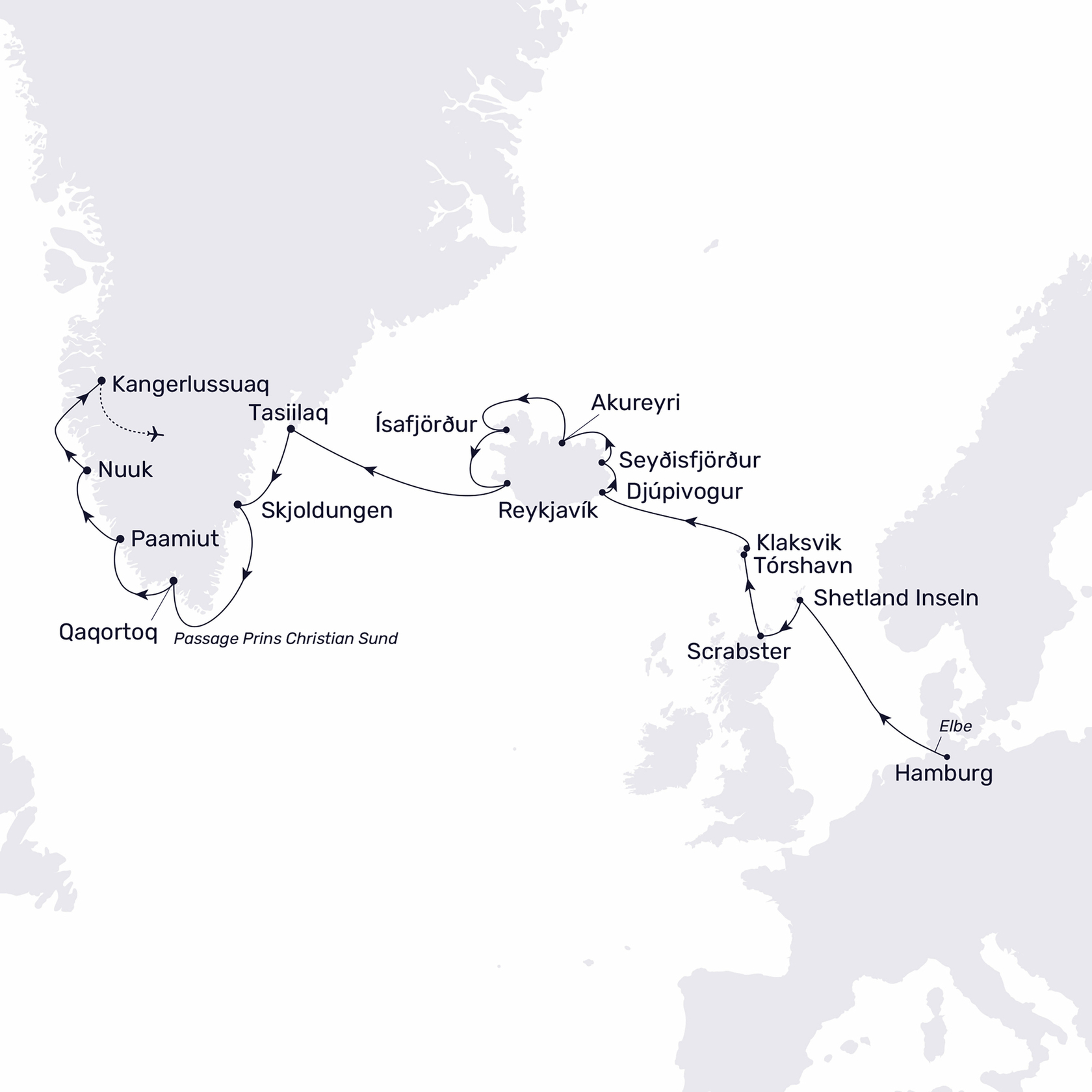 Hamburg – Scotland – Faroe Islands – Iceland – Greenland – Kangerlussuaq