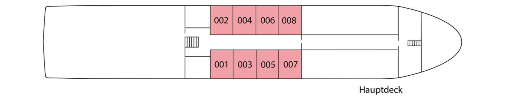 • 8 comfortable twin cabins outside, with 2 portholes on the main deck (20m²)
